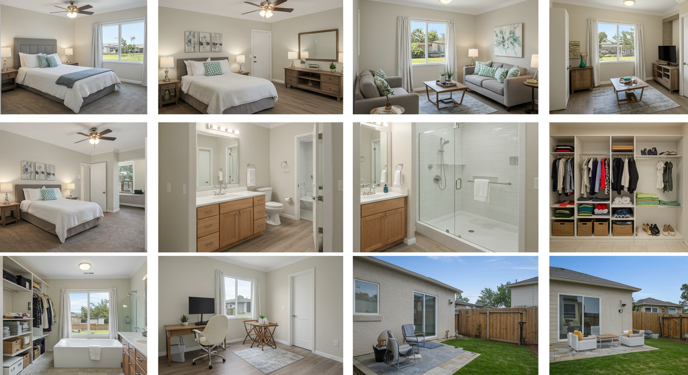 The primary suite features a walk-in closet and a luxurious en suite bathroom with a dual sink vanity, soaking tub, and separate shower.
