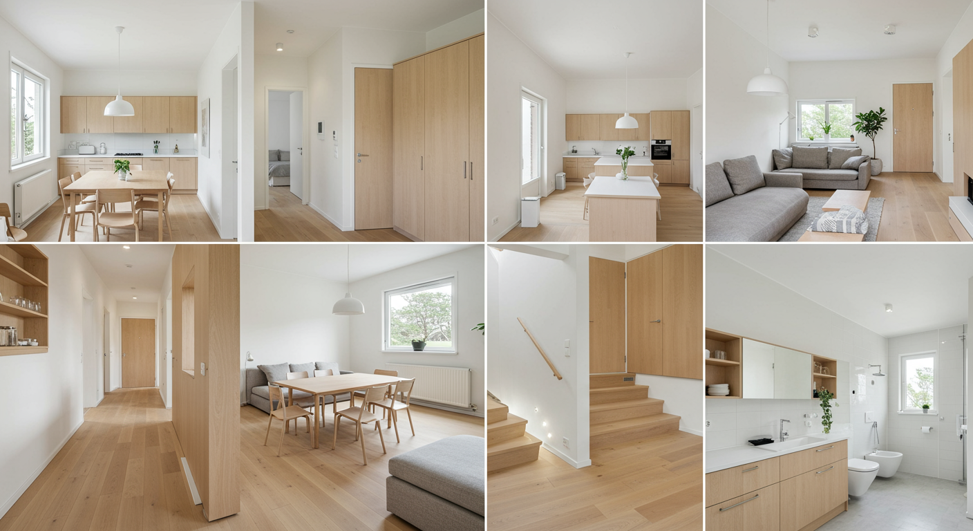 We're loving the color palette of this home as it blends the warmth of natural wood with clean white and black accents. The wood tones give the space a cozy and inviting vibe, while the white and black elements make the design feel modern and sophisticated.