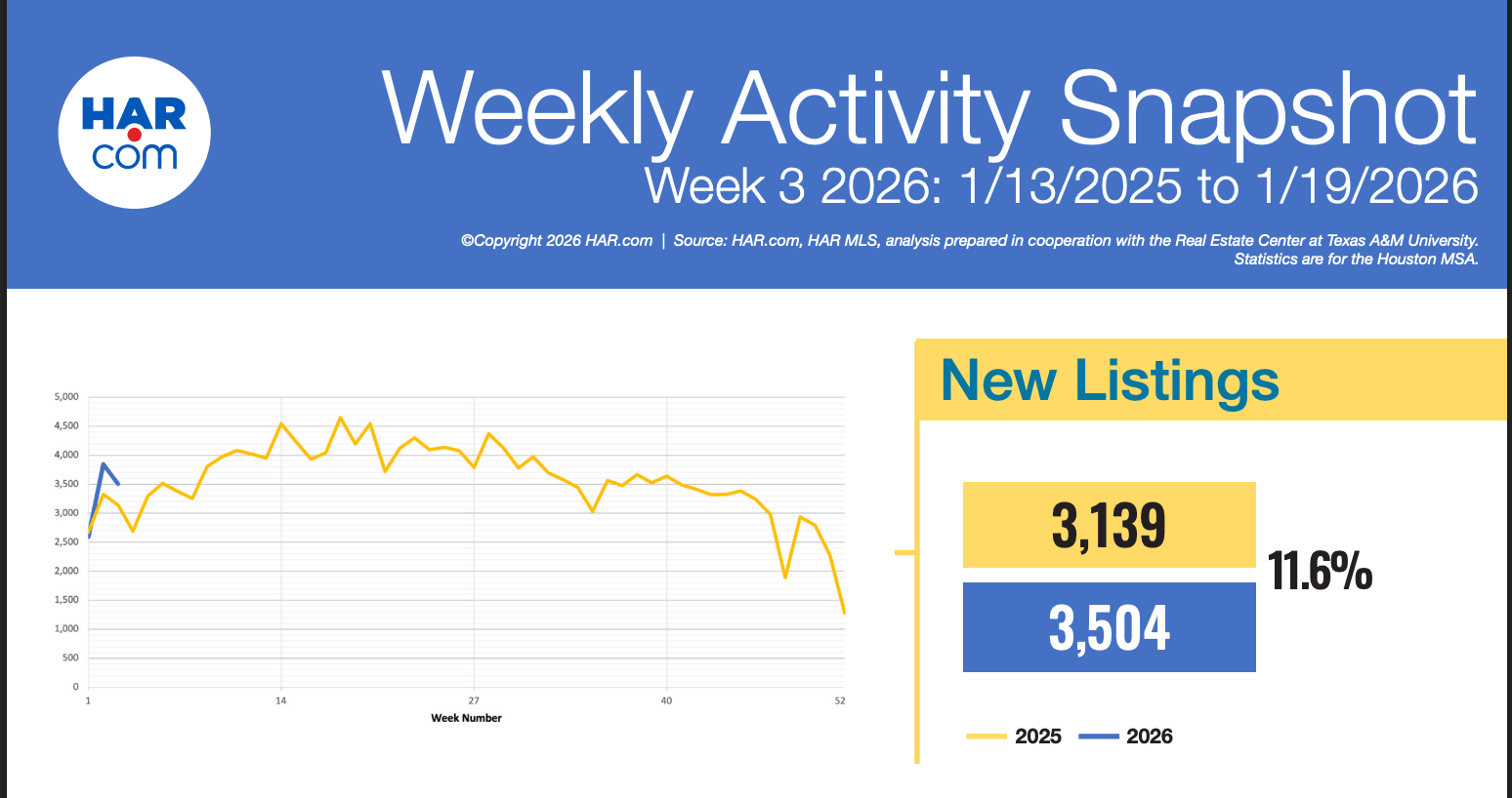Month’s Inventory in Houston is sitting at 4.5 months, while the last 2 weeks have shown double-digit growth in new listings. Compare that to January 2022 (peak of the pandemic boom) where we had 1.4 months of inventory, and January 2019 (a more “normal” market) where we had 3.7 months of inventory.